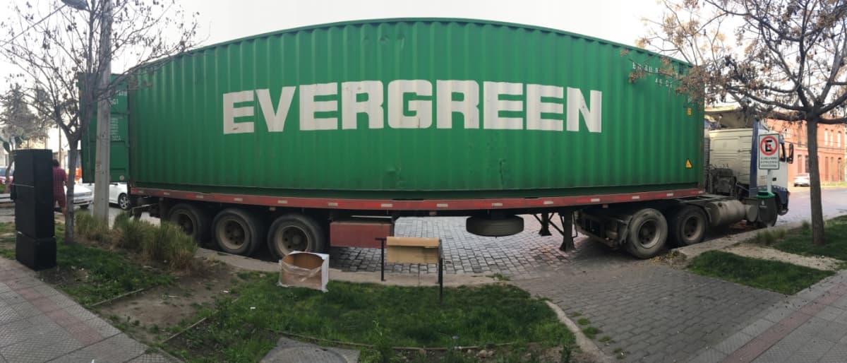 imágenes del camión repleto de papel higiénico justo frente a nuestras oficinas.
